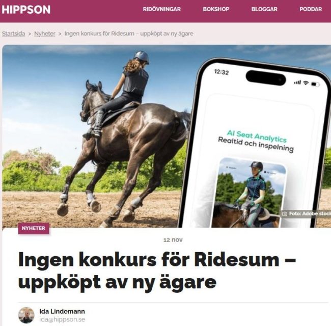 Hippson skriver om Fascia Horse köp av Horsetech-plattformen Ridesum.
