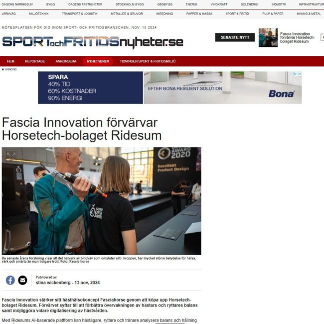 Sport och Fritidsnyheter skriver om Fascia Horse förvärv av Ridesum