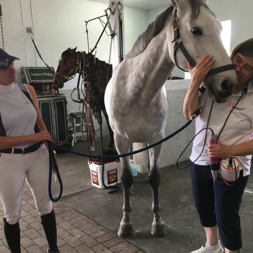 For professional athletes, the small margins matter. So riders do their best to help their horses increase their performance. Rolf Göran Bengtsson, Laura Kraut from Team US and the US team physiotherapist Janus Marquis has gone one step further. By investing in new treatment technology based on the latest anatomical research.